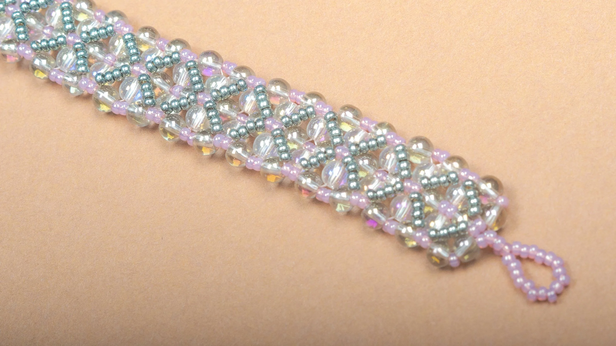 The Garden Bracelet is a woven bracelet made with glass beads and glass pearls. Elegance and luxury: Victorian style.